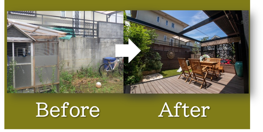 家族構成や住環境の変化、またお子様の成長なども、リフォームを考える大きなきっかけとなります。「車を手放したので、駐車スペースをお庭にしたい」「子供が大きくなり、外で食事ができるデッキを作りたい」などのご相談をいただきます。