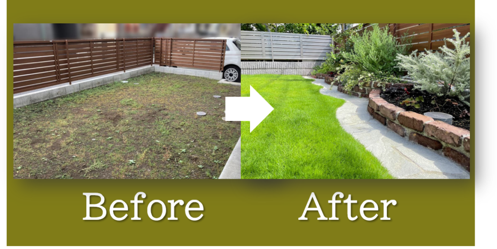 新築時に後回しにしていたお庭部分を、生活が落ち着いたタイミングで整えるケースです。