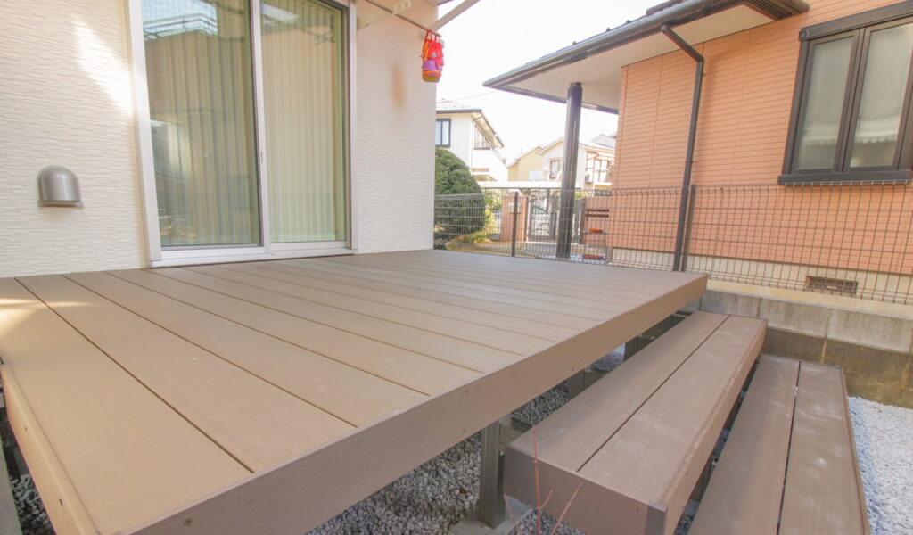 ウッドデッキは耐久性とメンテナンスを考え、LIXILの樹ら楽ステージを採用しました。これにより、お客様がお休みの日にゆったりと過ごせる空間が生まれ、その時間がさらに豊かなものになることでしょう。