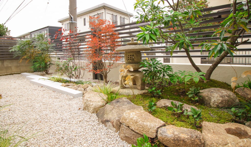 金沢区の潮風が心地よく吹き抜ける、アーバンな雰囲気の邸宅。その一角に、和の風情を感じる庭が広がっています。建物はシンプルモダンなデザインですが、お客様は灯篭や庭石といった和の素材を使った、和風モダンの庭をご希望でした。横浜市金沢区は、都心へのアクセスが良く、海辺のリゾート感と都会の利便性を併せ持つ地域。しかし、その地の個性を活かしつつ、建築と庭のコントラストをどう表現するかが、我々とお客様の大きな課題でした。