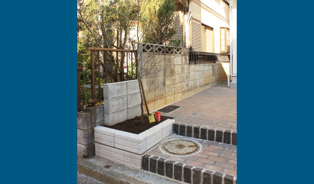 リビングの目隠しと門袖を兼ねた化粧ブロック塀