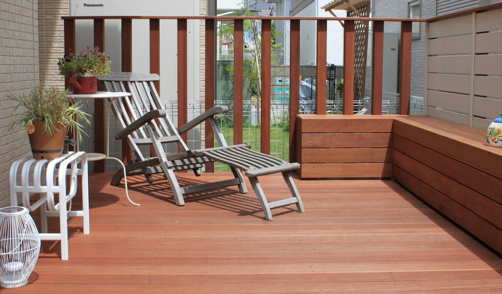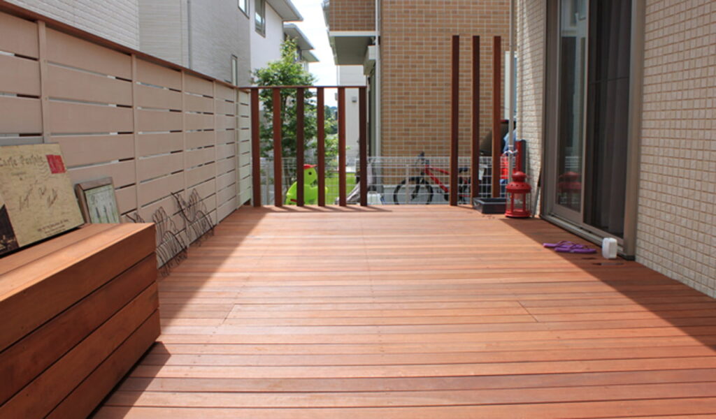 お客様が希望されたのは、ナチュラルでプライベート感のある庭。そして、それを実現するためにが、ウリン材のウッドデッキでした。ウリンは耐久性と美しさを兼ね備えた木材で、様々な天候にも耐えうる強さを持っています。ウッドデッキの施工により、お客様の庭は寛ぎの空間へと生まれ変わりました。バーベキューや子供のプール遊びにも最適な空間となり、家族の憩いの場として活躍しています。屋外用のコンセントも設置しているので、工具、照明、音源などなど、便利に使えます。ここで読書を楽しむ時間や、夜に照明を灯してのくつろぎ時間も可能になりました。