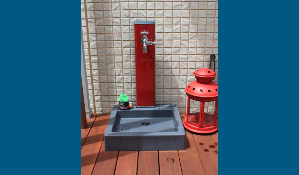 ウリンの列柱は、目隠しの目的ではないので隙間を大きくとって設置しています。そのため開放感があり、愛犬も気持ちよく自由に駆け回ることができるようになりました。また、お庭の植物の水やりに欠かせない立水栓も設置。これにより、庭木の手入れもスムーズになりました。