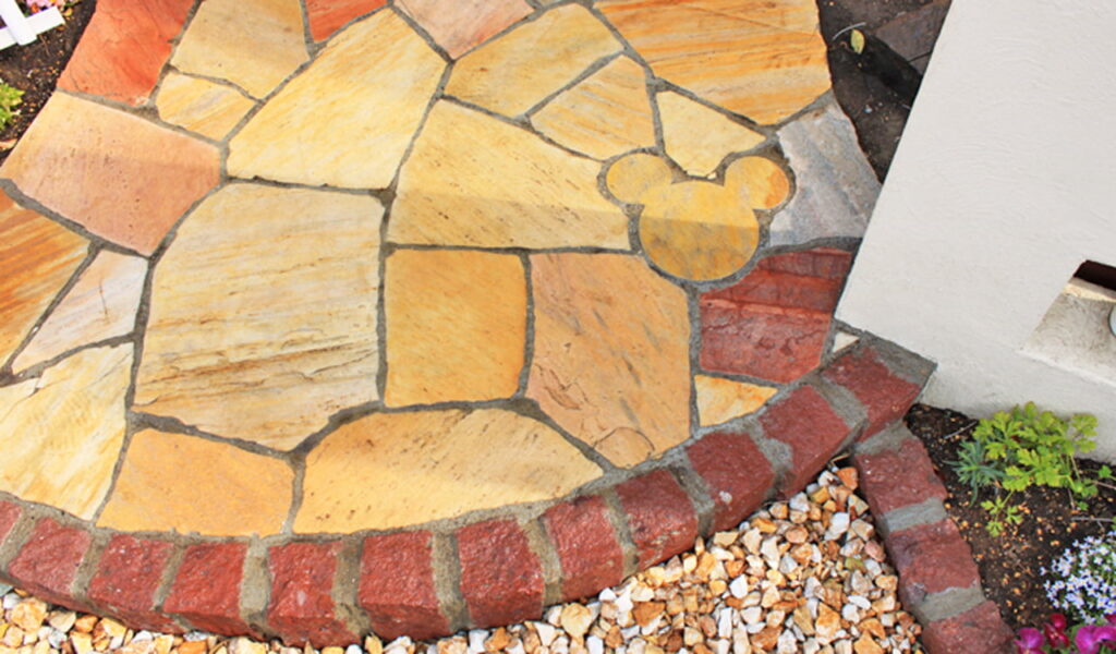 横浜市戸塚区、そこに新しく誕生した一軒の家。その家主であるお客様から我々にご相談いただいたのは、自然石とレンガを活用したナチュラルで可愛らしい外構デザイン。そして一つ、特別なリクエストがありました。「ミッキーマウス風の模様を入れて欲しい」とのこと。
