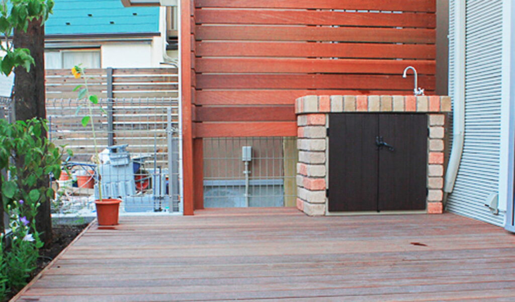 お客様からは、ウッドデッキをお庭に設置したいとのご相談をいただきました。また、リビングが外から見えないような目隠しと、植物が植えられる花壇スペースを残すことも要望として挙がりました。それぞれの要望を形にするため、我々はしっかりと計画を練り、施工に取り組みました。
