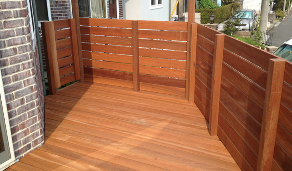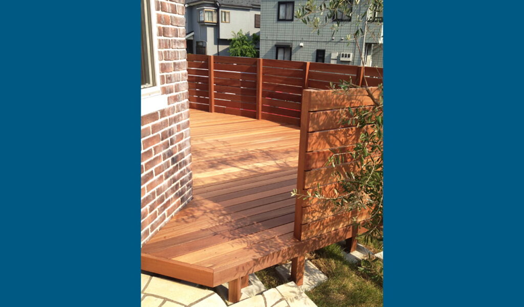 横浜市都筑区。この地で、我々はあるお客様からのご依頼を受けることとなりました。お客様のお悩みは、掃出しからの高さと傾斜があるお庭の有効活用と、外からの視線を気にされていたこと。そこで我々は、ウッドバルコニーの設置と、視界を遮断するウッドフェンスを提案させていただきました。
