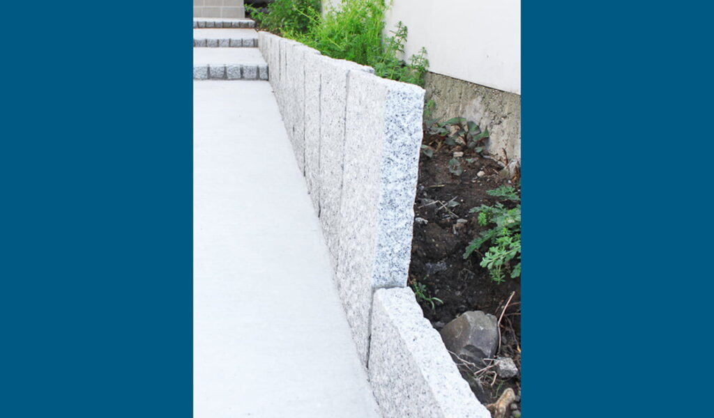 施工の際、最も悩んだのは土留めの方法でした。土の鋤取りや残土の量もかなり多く、整地の段階での勾配をつけるのが難しく時間がかかりましたが、車も停めやすいなだらかな登りのアプローチになりました。自然の風合いを大切にしたいお客様の思いを尊重し、我々は自然石の列柱で境界の土留めを行うことに決定。これにより、堅牢さと風格を兼ね備えた外構が完成し、お客様からは大変喜んでいただけました。