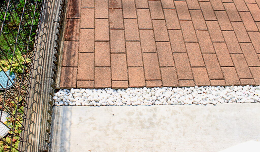 お庭の植栽の伐採・抜根や解体工事を行い、コンクリートの土間打ちを施工しました。インターロッキングとの境には、白の化粧砂利を見切りで入れ、排水溝へ流れるようにしています。雨の日も安心な排水構造を取り入れることで、お客様に安心感を提供しました。