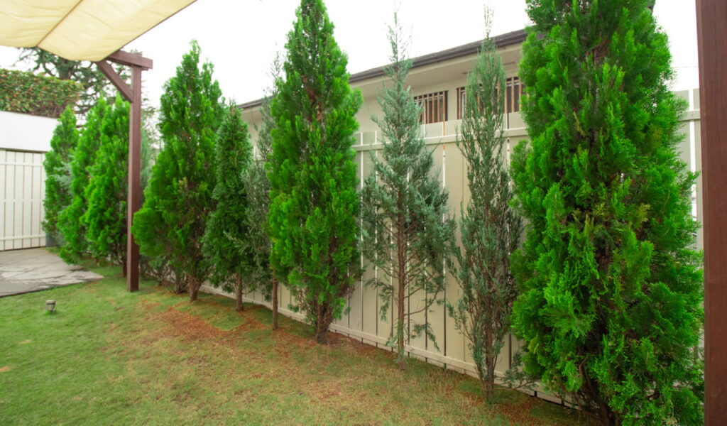 庭の前面に目隠しフェンスとコニファーを植栽し、緑に囲まれ愛犬と楽しめるお庭になりました。人目を気にせず、お庭でゆったりと過ごしていただけたら嬉しいです!