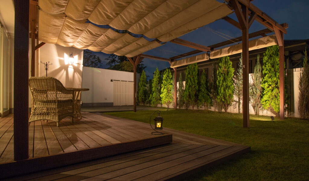 元々あったパーゴラや既存の植栽を撤去し、ウリンのデッキとパーゴラにリフォームしました。ライティングで植栽を照らし夜間も楽しめるお庭をデザインしました。アッパーライトで植栽を照らし、幻想的なナイトガーデンも楽しむことができます。ワイドのあるパーゴラは耐久性を考慮すると本来必要となる間柱をなくすために隠れた工夫がしてあります。