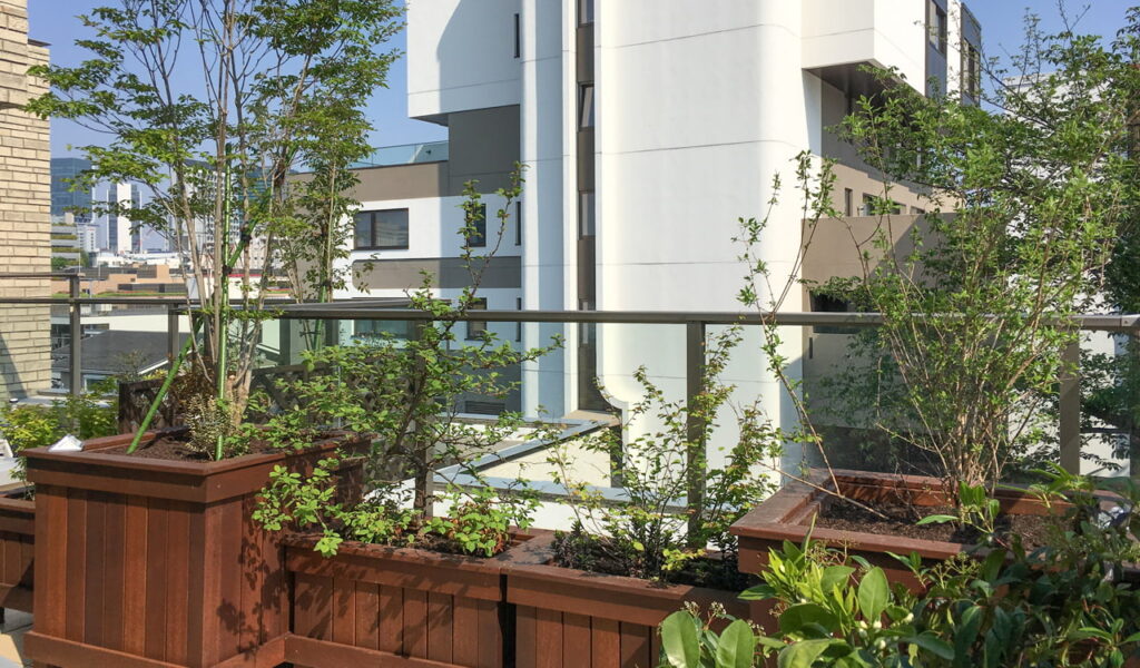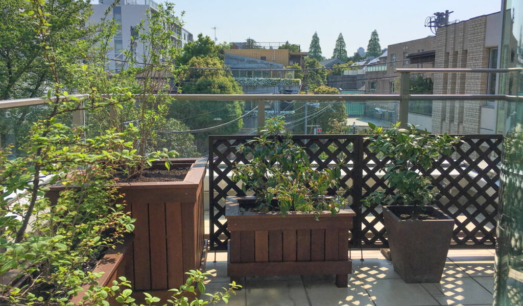 ウリンのプランター修理と再塗装で都心のバルコニーガーデン再生