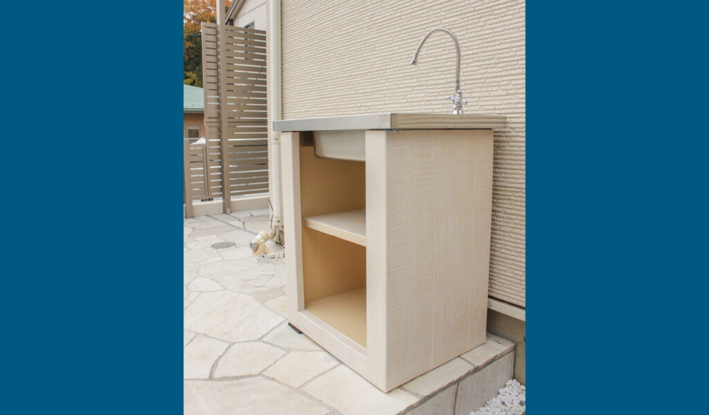 リフォームをご検討されていたのは、三角形のお庭とそこへ続くアプローチでした。まずは、お庭に隣接するアパートからの視線を遮るため、アルミフェンスを設置。高さがありながらも、デザインはシンプルなものを選定。ナチュラルな白い乱形石貼りのテラスを造り、土の面積を減らしてメンテナンスがしやすいようにリフォーム。適度にガーデニングゾーンを設け、管理しやすいお庭になりました。ニッコーのガーデンシンクは小ぶりで使い勝手が良く、ガーデニングをより快適に楽しんでいただけます。