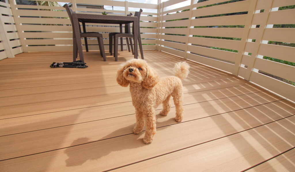 横浜市旭区、この地で暮らすお客様は、ご自身でのDIYされたウッドデッキで、愛犬との楽しい時間を満喫していらっしゃいました。しかし、時の流れと共に、デッキの土台は老朽化し、お客様は私たちにリフォームのご相談をくださいました。お客様のご要望は「メンテナンスがかからず、明るい雰囲気にしたい。愛犬を遊ばせられて来客とお茶ができるようにしたい」とのことでした。