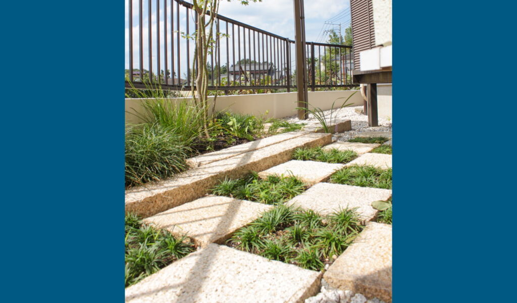 我々はお客様の思いを形にするために、ノーメンテナンスで明るい雰囲気の出せる樹脂デッキのテラスをご提案いたしました。人工木デッキ「樹ら楽ステージ木彫」は適度にスリットが入っているため、お客様の愛犬の足にも優しい空間を提供します。イタリア斑岩のアプローチとウッドデッキのエントランスが、訪れる人々を温かく出迎えます。愛犬が抜け出せないように、設置したLIXILラフィーネ門扉には、造作で格子を加えています。