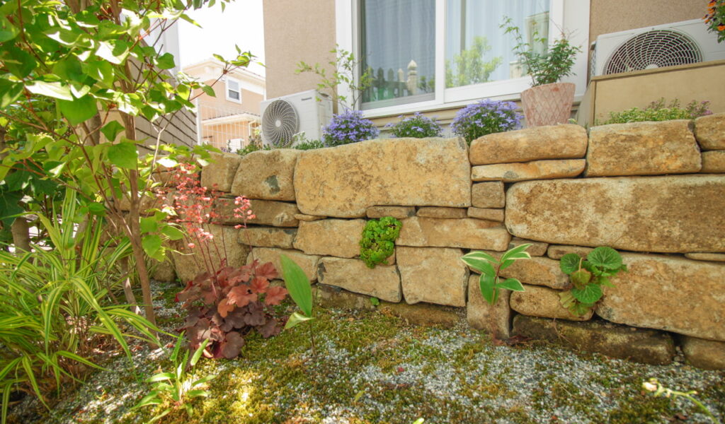 コニファーとグランドカバーのお庭から石積みの自然な土留めと雑木風の植栽にリフォームしました。