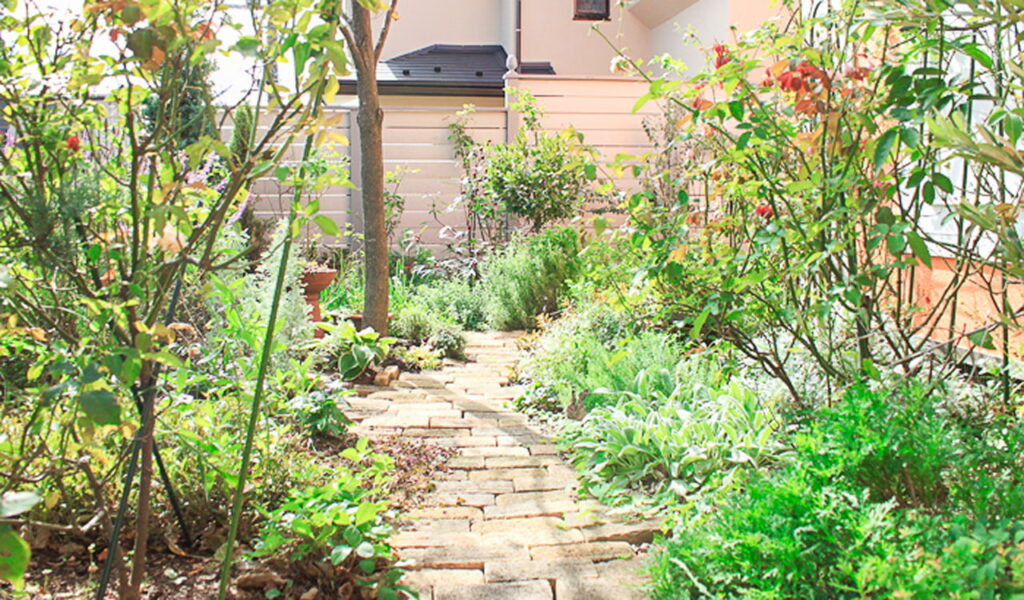 豊かな自然と調和したイングリッシュガーデンとウッドデッキの施工事例