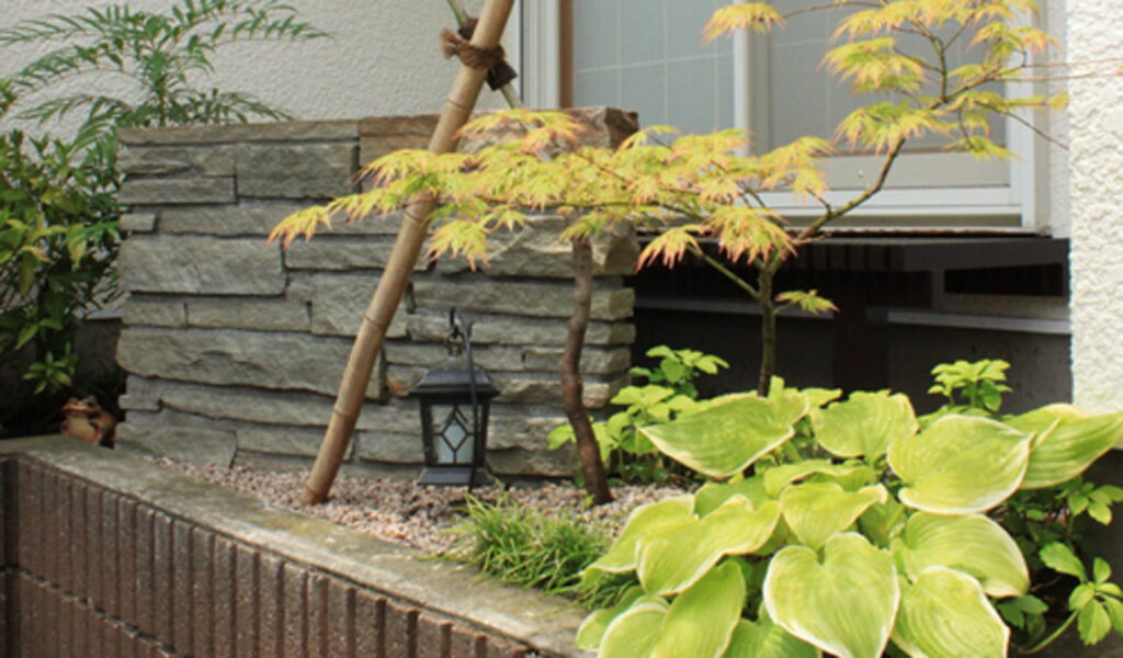 雑木林をイメージし低・中・高の植栽がバランスよく植えなおされました。コニファーだけの少し寂しかった花壇から、様々な樹種の植栽が入った賑やかなお庭にリフォームしました。