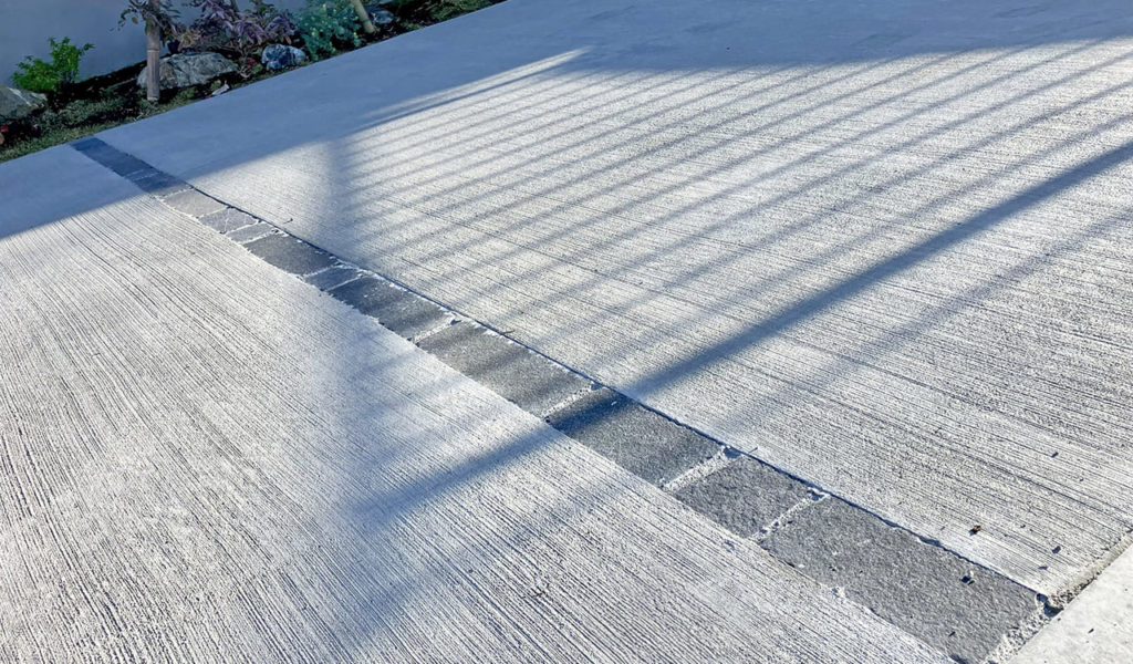 土地形状を活かしながら、停めやすさを考慮して設計した駐車スペースは、美しい刷毛引き仕上げの土間コンクリートに、ピンコロ石のラインをアクセントとして取り入れるなど、ディテールにもこだわりました。