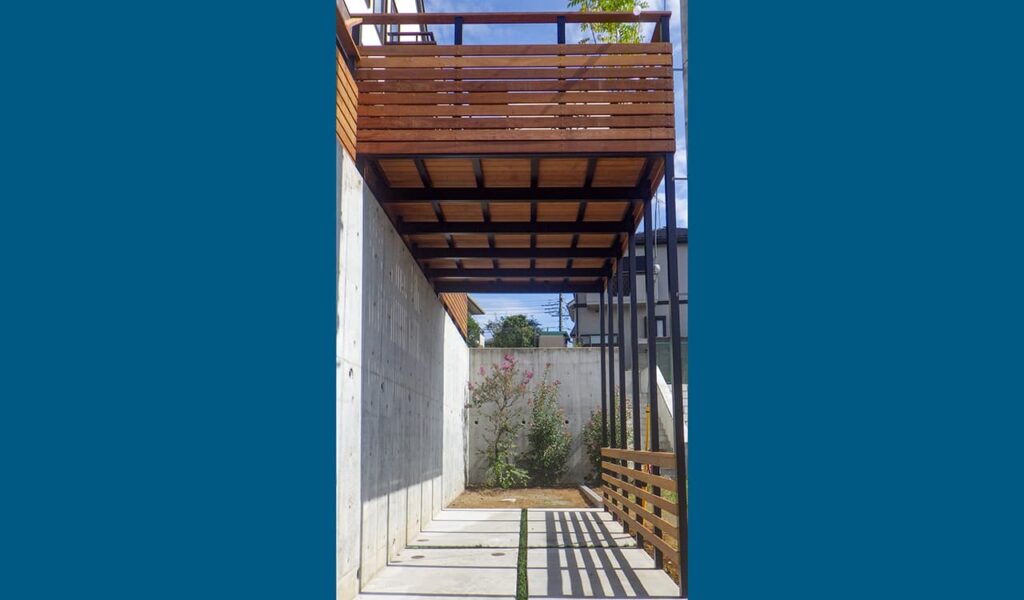 我々にご相談いただいたお客様は、安全性を重視したスカイウッドデッキを中心にした外構を希望されていました。ご計画地は道路との高低差がある土地の為、限られたスペースを効率的に利用しつつ、自然素材の温もりを感じられる空間を作り出すことが課題でした。