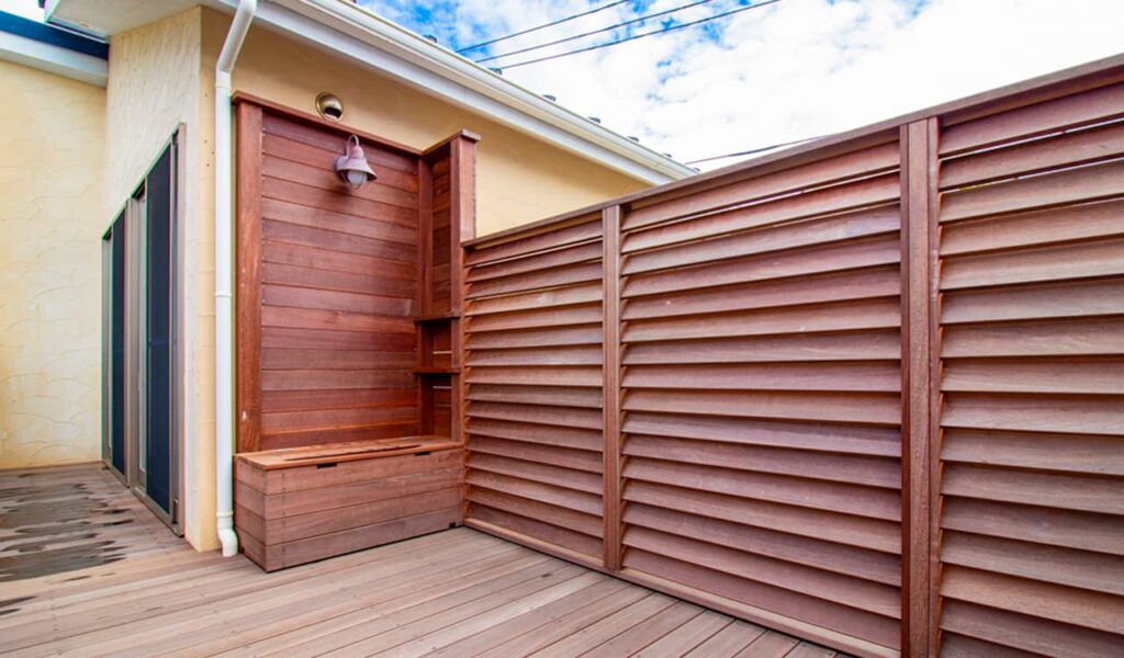 我々はお客様の要望を叶えるべく、天然素材のウリン材を用いて、バルコニーから庭のデッキ、物置、フェンス、扉まで全てを生まれ変わらせるリフォームを提案しました。デザインは大きく変えずに、使い勝手や安全性を重視し、さらに機能性を高めることを心がけました。