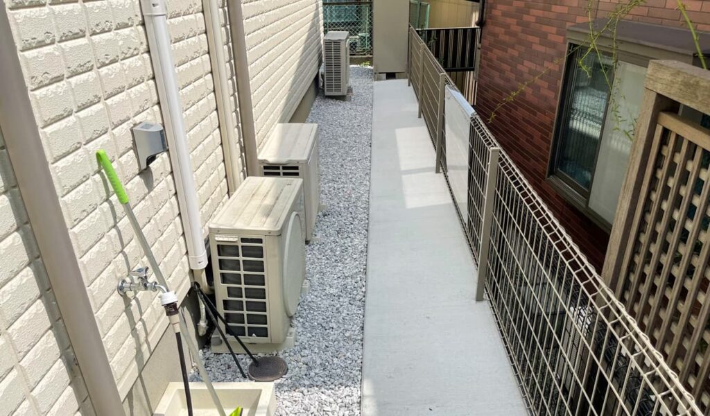 のちの追加工事の際には、ずっと悩まれていた裏の土地の有効活用に着手。既存フェンスの位置を敷地境界ギリギリまで下げ、空間が倍ほどの広さになるよう施工。敷地の有効スペースを広げ、物置を設置するなど実用的な空間を確保できました。これによって、お客様が望まれていた「家の裏を使えるスペース」が実現しました。
