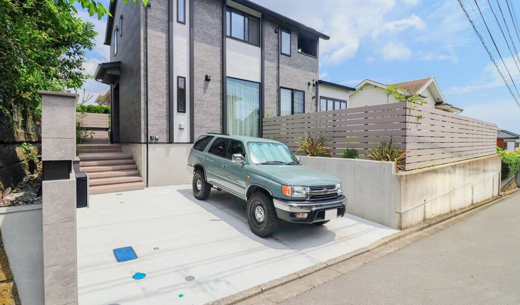 横浜市金沢区、東京都心へのアクセスも良く、坂が多く緑豊かな地形が特徴のこの地で、新たな生活のスタートを切ることとなった30代のお客様。大型犬との楽しい休日を過ごすために、ここに一軒家を建てられました。その際我々に、ご新築の外構エクステリアのデザインのご依頼をいただきました。