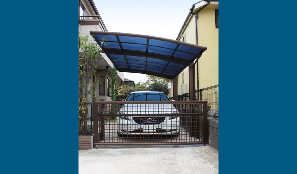 そこで、既存のブロックフェンスと一体感をだすために、同色のカーゲートとカーポートを選択しました。カーポートは、青いポリカのパネルが洗練された印象のYKKのレイナポートグランを、カーゲートには、既存のメッシュフェンスに合わせたYKKのエクスラインアップゲートを採用しました。その結果、新たな駐車スペースはただ機能的なものだけでなく、全体の美しさを保つことができました。