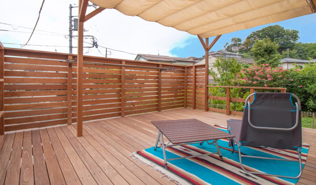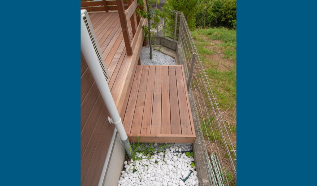 イペ材はウリンと比べると木目に風合いがあり、ナチュラルな雰囲気のウッドデッキとなりました。ランチや物干し、お子様の遊び場など、アウトドアリビングとして多目的に使ってください!