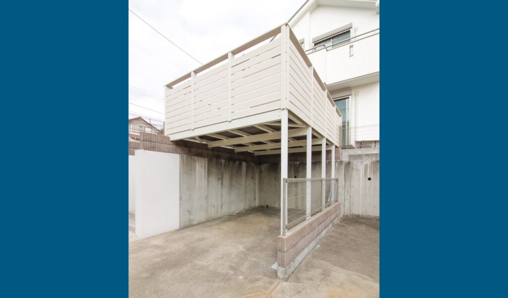 横浜市磯子区の高台に構える邸宅。そこにご新居を構えたお客様から、ご入居後すぐにご相談をいただきました。高い擁壁の上という立地条件のため、お庭がないことがお悩みでした。そこで我々は、お客様の要望を形にするべく、車庫上デッキの設置を提案しました。